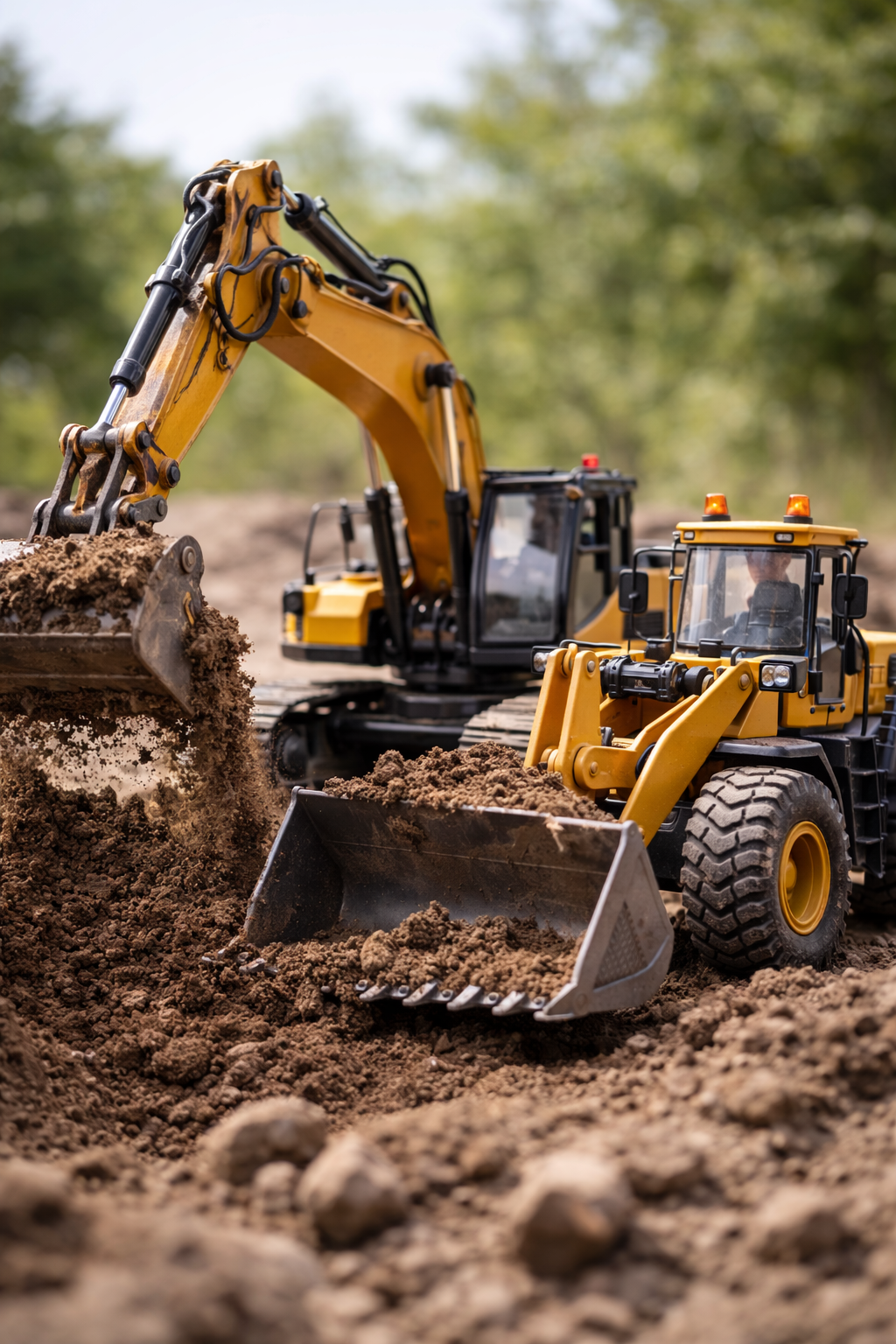 Remote control dirt moving and rock crawlers for events.